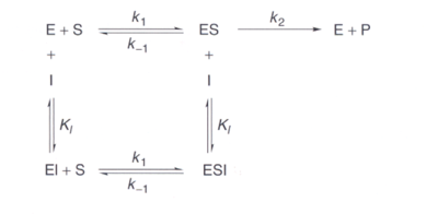 Reversible inhibition is said to be [blank_start]COMPETITIVE[blank_end] whereas irreversible inhibition [blank_start]can be NON-COMPETITIVE or UNCOMPETITIVE.[blank_end]