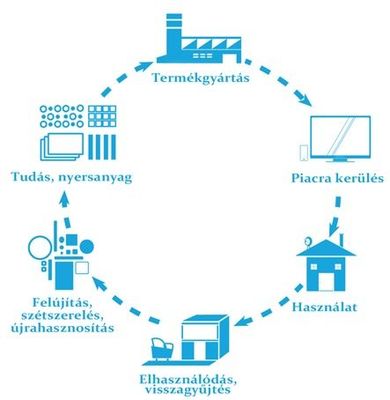 • gyűjtés és válogatás → darálás → extrudálás → hűtés → granulálás → fröccsöntés