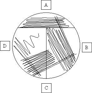 A culture is smeared on a slide to be about the shape of a dime. It is stained with crystal violet and safranin the heat fixed so that the stains will identify the type of bacteria present.