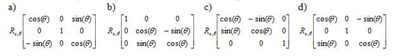 Ktora z podanych macierzy opisuje obrot ukladu wzgledem osi „z”