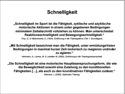 Welche Aussagen zur "Schnelligkeit" sind Richtig?
