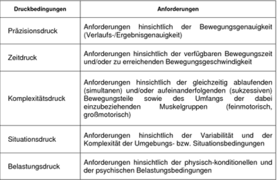 Welche Druckbedingungen wirken nach Neumaier bei der Bewältigung von Bewegungsaufgaben?
