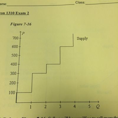 Suppose each of the five sellers can supply at most one unit of the good. The market quantity supplied is exactly 4 if the price is...