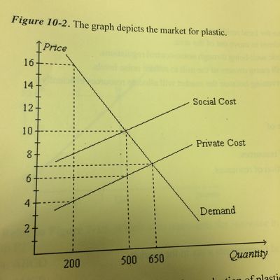 Suppose that the production of plastic creates a social cost which is depicted in the graph shown here. Without any government regulation, how much plastic will be produced?