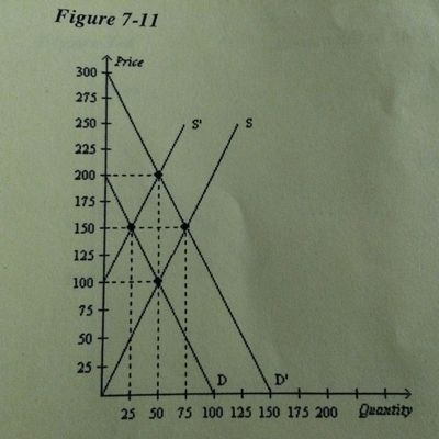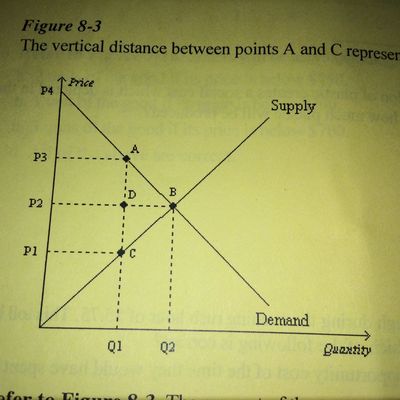 FYI: The vertical distance between Points A and C represents a tax in the market.