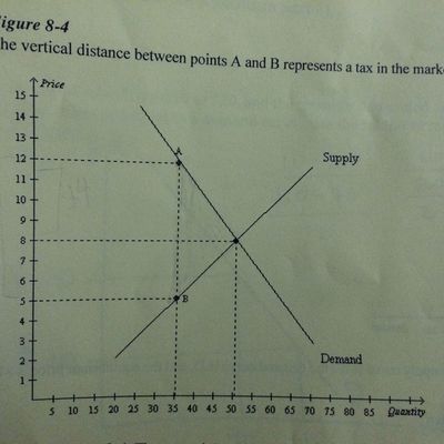 FYI: The vertical distance between Points A and B represents a tax in the market.