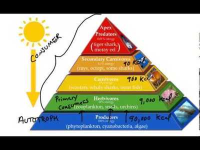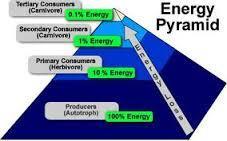 As you move up to the top of the pyramid from producer to consumer, the diagram becomes smaller and smaller to show how less and less energy is available.