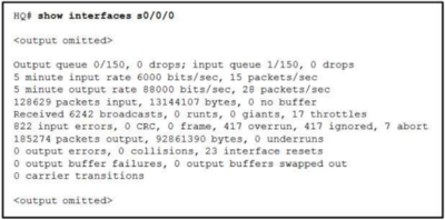 Refer to the exhibit. A network administrator issues the show interfaces s0/0/0 command on a router to determine the cause for a recent decrease in device performance. Based on the output shown, what is a possible cause of the observed performance issues?