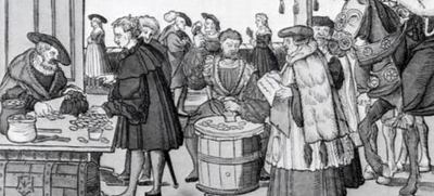 This picture depicts an event where people can pay to have a guaranteed spot in heaven or to get relatives out of purgatory. It is known as the sale of ________________________.