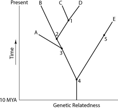 Which extinct species should be the best candidate to serve as the outgroup for the clade whose common ancestor occurs at position 2 in Figure 26.1?