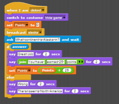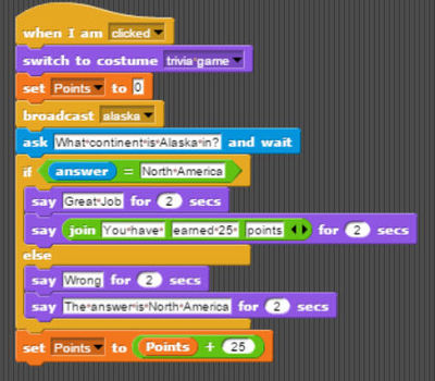Mr. Bland has started a trivia game. Every player gets the first answer correct regardless of what they input. Which block has an error?