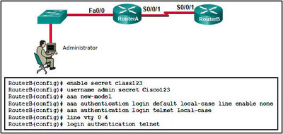 Refer to the exhibit. The administrator can ping the S0/0/1 interface of RouterB but is unable to gain Telnet access to the router by using the password cisco123. What is a possible cause of the problem?