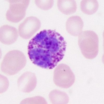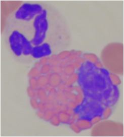 You are in the lab and see this and identify it as the following: [blank_start]Basophil[blank_end]