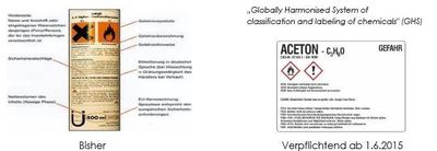Mit einem Gefahrensymbol auf verschieden farbigem
