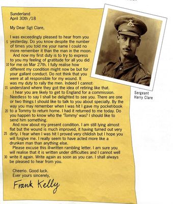 Kelly is writing out of duty rather than because he feels genuinely grateful to Clare