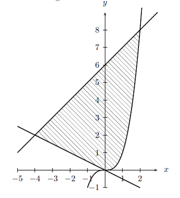 Para determinar el área de la región sombreada, cuantas integrales se deben plantear?