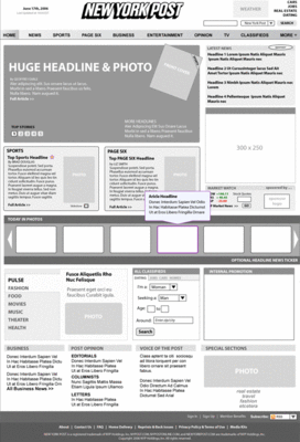 A generic layout of the website that provides a skeletal structure that guides the placement of content on each page of the site.