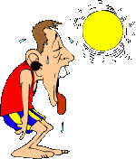 Der Mann schwitzt in der Sonne. Er hat sehr [blank_start]heiss[blank_end].
