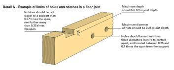 Holes between joists must be of a minimum distance from top or bottom fixing surface of