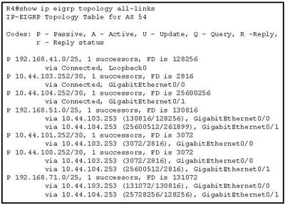 Refer to the exhibit. Which two networks contain feasible successors? (Choose two.)