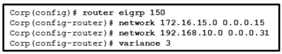 Any EIGRP-learned route with a metric equal to 3 times the successor metric will be installed in the local routing table.
