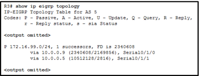 In an EIGRP topology table, a route that is in a/an [blank_start]active[blank_end] state will cause the Diffusing Update Algorithm to send EIGRP queries that ask other routers for a path to this network.
