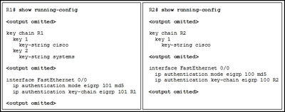 The keychain for EIGRP authentication must be configured on the interfaces.
