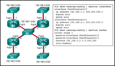 because the Fa0/0 interface of R1 is declared as passive for EIGRP