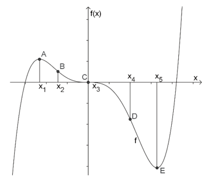 Wendepunkt der Funktion f. Die Punkte A und E sind lokale Extrema.