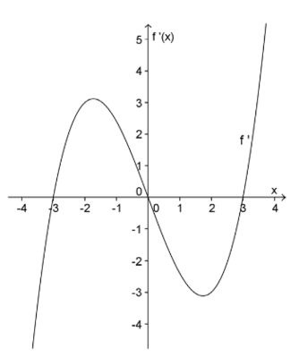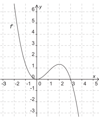Die Abbildung zeigt den Graphen der Ableitungsfunktion f einer Polynomfunktion f.