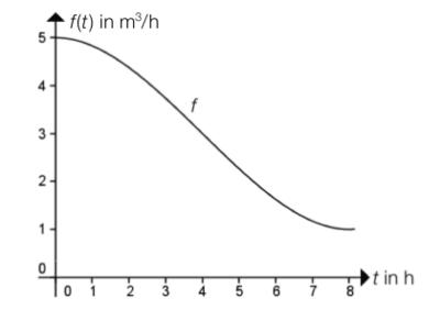 Ein Becken wird mit Wasser gefüllt. Die in das Becken zufließende Wassermenge, angegeben in m³ pro Stunde, kann im Intervall [0; 8) durch die Funktion f beschrieben werden. Die Funktion f hat an der Stelle t = 4 eine Wendestelle.