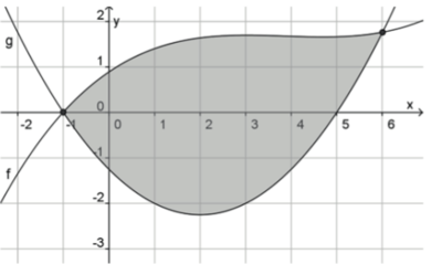 Die Funktionsgraphen von f und g schließen ein gemeinsames Flächenstück ein.