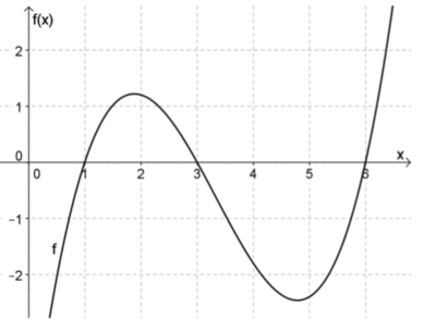 Die stetige reelle Funktion f mit dem abgebildeten Graphen hat Nullstellen bei x 1 = 1, x 2 = 3 und x 3 = 6.