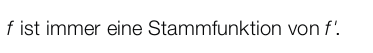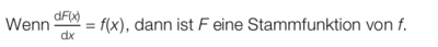 Ist die Funktion F eine Stammfunktion der Funktion f, dann gilt [blank_start]_________________[blank_end]