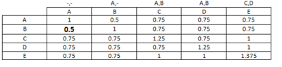A relationship matrix has been calculated for a small population and is given below. Calculate the relationship coefficient between X and C.