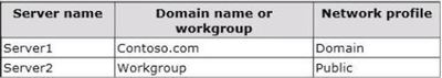 Your network contains an Active Directory domain named contoso.com. The domain contains two servers named Server1 and Server2 that run Windows Server 2012 R2.
