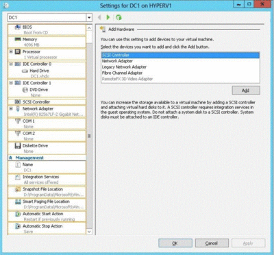 contains a member server named Hyperv1 and a domain controller named DC1. Hyperv1 has the Hyper-V server role installed. DC1 is a virtual machine on Hyperv1.