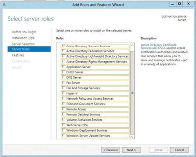 You install Windows Server 2012 R2 on a new server named Server1 and you join Server1 to the domain.