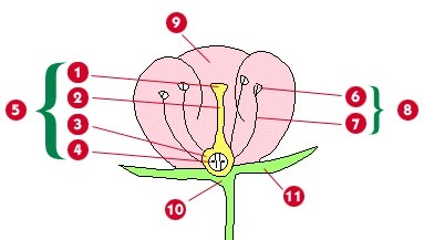 Labels 6 and 7 on the diagram are indicating the ___ of the flower.