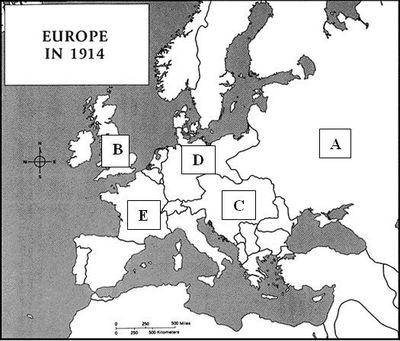 (WWI Map) What letter represents Great Britain?