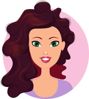 Violet has got [blank_start]long[blank_end], brown, curly hair. She's got [blank_start]green[blank_end] eyes.