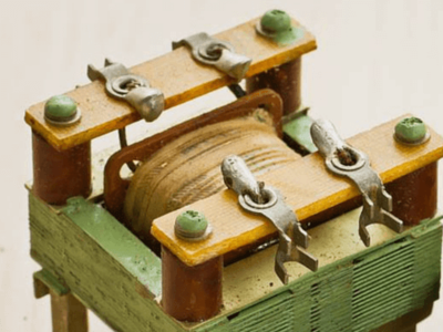 The image in this question shows an electromechnical relay. What physical quantity does 'A' represent?