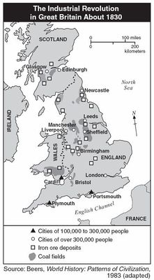 Which of the factors that led Great Britain to the Industrial Revolution is indicated on the map?