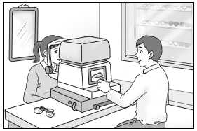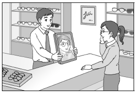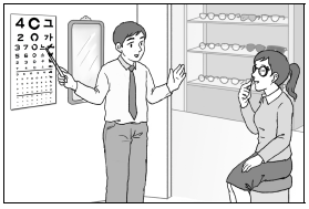 남자 :안경을 쓰고 거울 한번 보세요.어떠세요?
