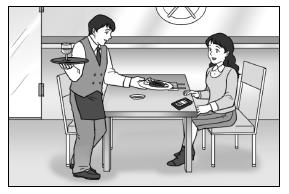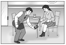 남자 :잠깐만요,손님.여기 전화기 놓고 가셨어요.