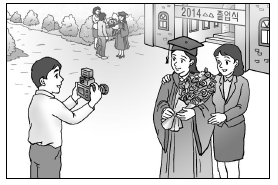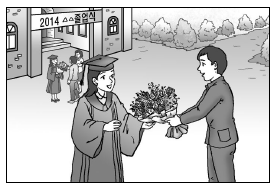 남자 :졸업 축하해요.이 꽃 받으세요.
