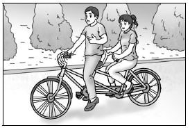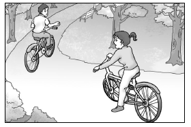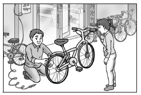 여자 : 잠깐만요. 오랜만에 자전거를 타니까 잘 못 타겠어요.