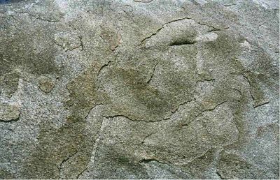 - [blank_start]Curved[blank_end] sheets [blank_start]peel[blank_end] off from the rock.