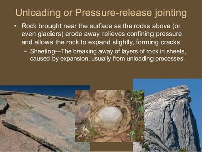 Pressure is released from rock due to [blank_start]erosion[blank_end] of the rocks above them.