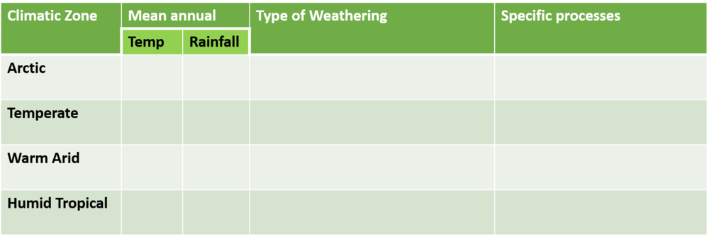In climates where daily [blank_start]temperature[blank_end] fluctuate above and below [blank_start]0oC[blank_end], water freezes and expands by [blank_start]9%[blank_end].